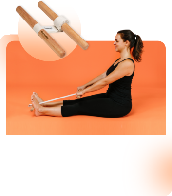- Simply place one wooden bar onto your feet soles and grab the counterpart with your hands.